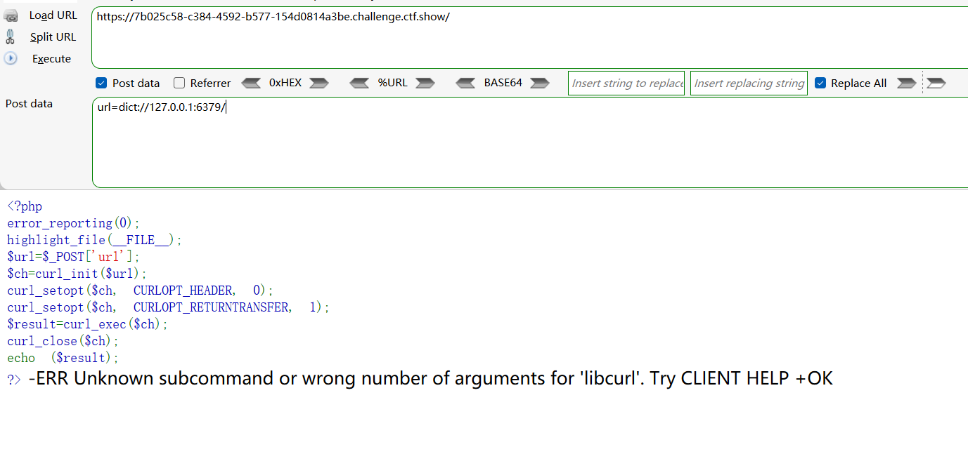 这题肯定是写shell了,先利用dict探测一下端口,看看6379存不存在,如果目标的redis换端口了,就利用dict协议来探测: